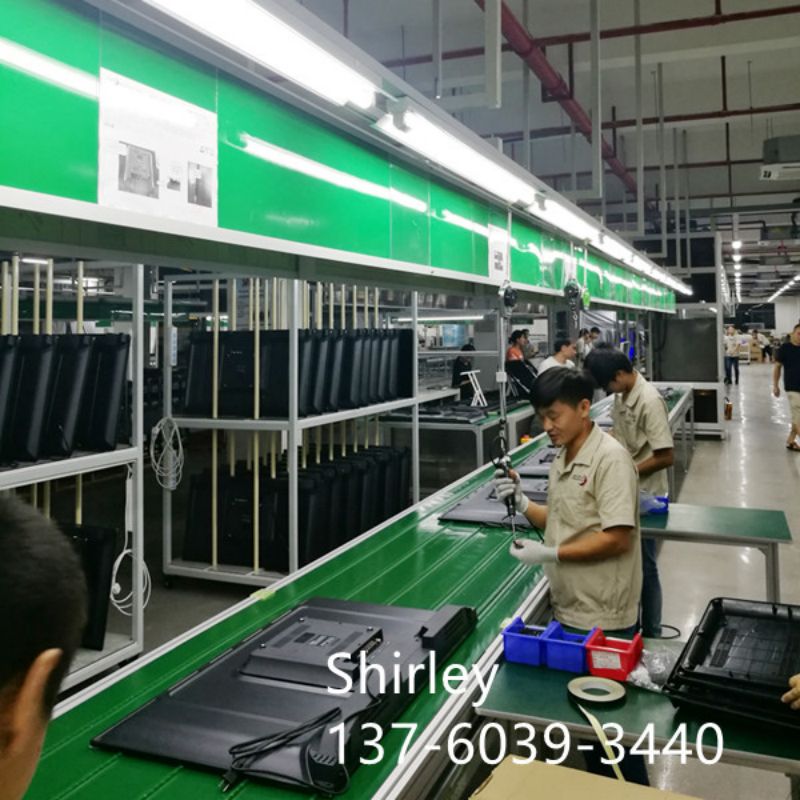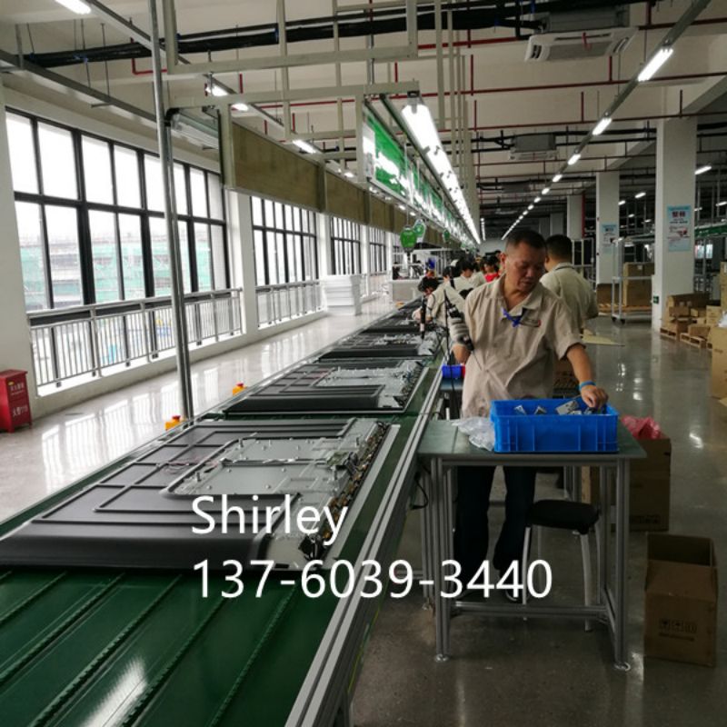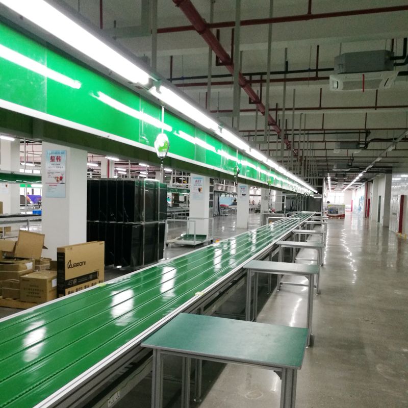 The lighting can be fit on the ceiling of factory, which is very convenient for your workers operation when they do the tv assembling jobs and have enough place to move the tools/equipment, material. Of course, you can fit the lighting frame on the conveyor assembly line. This type assembly line can be used for other products assembling, like electronic products, home appliance, almost all kinds of products can use this type belt conveyor assembly line. Please contact us with your products, we give you solution for your project.